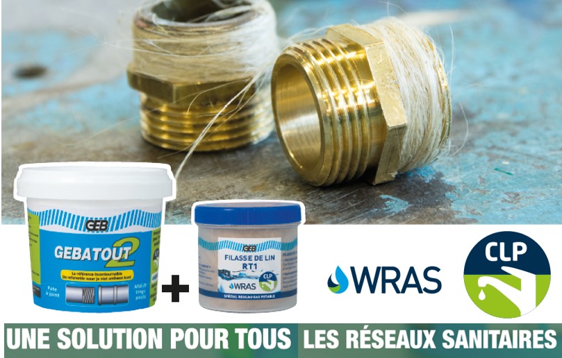 Finalement, il faut retenir que c’est l’agrément CLP qui fait foi en France et que le couple Gebatout2 + Filasse de lin RT1 est autorisé sans restriction sur les installations en contact avec l’eau destinée à la consommation humaine. En associant son incontournable pâte à joint Gebatout2 et sa Filasse de lin RT1, GEB offre aux plombiers l’assurance de pouvoir répondre sereinement à tous les chantiers qui demandent une conformité eau potable. La filasse devient alors autorisée dans les réseaux d’eau potable.