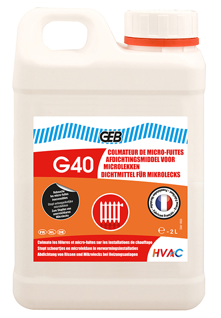 – Compatibiliteit met het materiaal : Verstopt de circulatiesystemen niet. Mag gebruikt worden op vloerverwarming om de microlekken te vullen ter hoogte van de metalen verbindingen. Tast de nippelvoegen van de radiatoren niet aan.