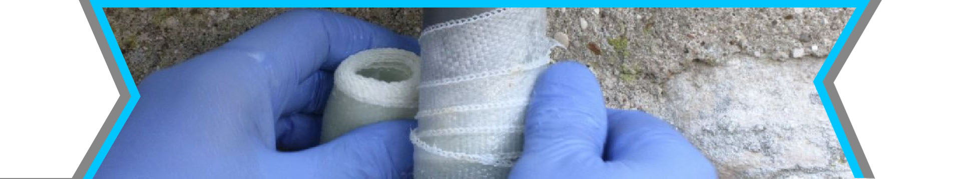 Si nécessaire, coupez l’arrivée d’eau. Poncez et nettoyez la zone à réparer. Utilisez de la résine époxy pour combler les grands trous/fissures si nécessaire. Préparez un bol d’eau (douce ou salée) à température ambiante. Enfiler les gants fournis (latex) ou des gants adaptés. Vérifiez qu’il y a suffisamment d’espace autour de la zone à réparer pour ajuster le ruban (environ 30 mm).