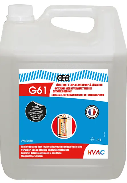 Het wordt sterk aanbevolen om de resterende zuurheid die te wijten is aan de ontkalking te neutraliseren met G70 NEUTRALISEREND MIDDEL.