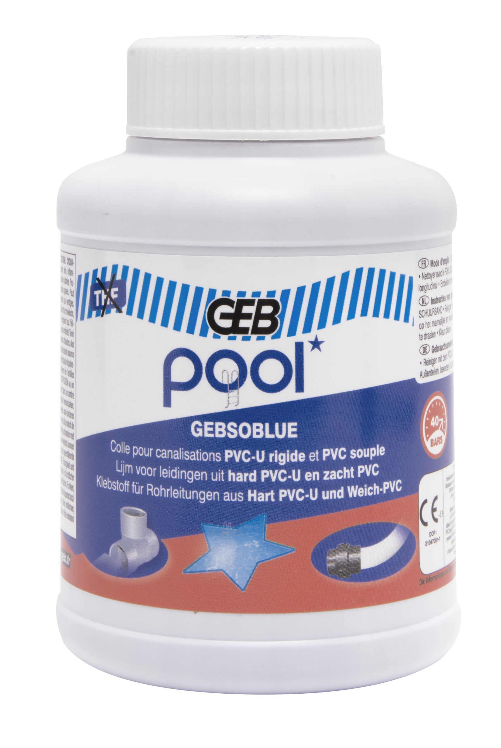 ‘- Lijm voor het aan elkaar bevestigen van leidingen van flexibel PVC en hard PVC (U-PVC) in zwembadomgevingen.