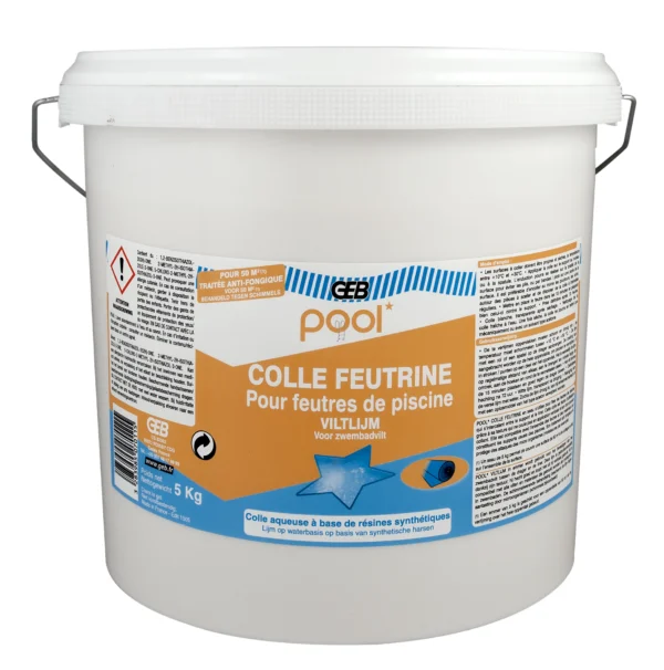 – Hechting : Goede hechting op de gebruikelijke materialen van zwembadstructuren zoals beton, hout, polystyreen, polyester, … Compatibel met de meest verkocht viltsoorten van PE, PP of polyester.