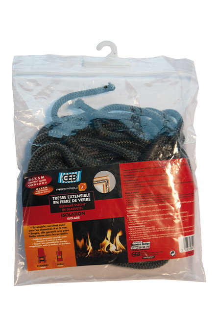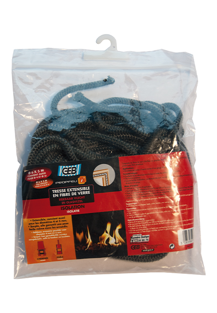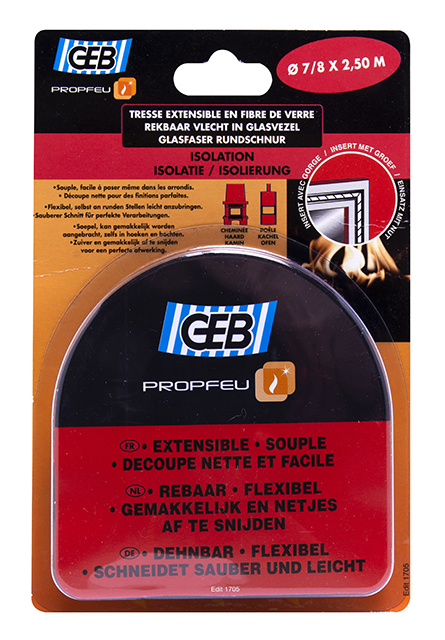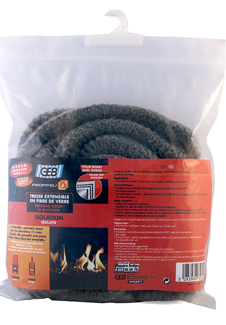 Snij met een mes de benodigde hoeveelheid van de vlecht af. Breng een rups vuurvaste lijm aan op de ondergrond. U kunt de vlecht beter in de uitsparing forceren door hem te comprimeren dan door hem uit te rekken. U moet zich absoluut aan de aanbevolen diameters houden (breedte van de groef in vergelijking met de nominale diameter van de vlecht). Breng de vlecht stevig aan op de lijmrups en laat drogen (ongeveer 2 uur in dit geval met de PROPFEU COLLAFEU voor een geleidelijke temperatuurverhoging).