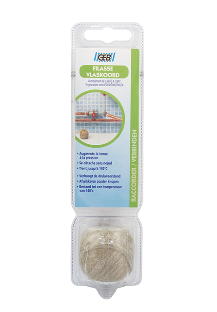 Breng op de mannelijke en vrouwelijke aansluiting de voegkit aan die het best past bij de gebruiksomstandigheden (aard en temperatuur van de vloeistof, aard van de aansluiting, staat van de schroefdraden). Wikkel het vlas rond de mannelijke aansluiting in de richting van de schroefdraad en strijk glad. Zet aan elkaar en schroef stevig aan (> 50 N.m).