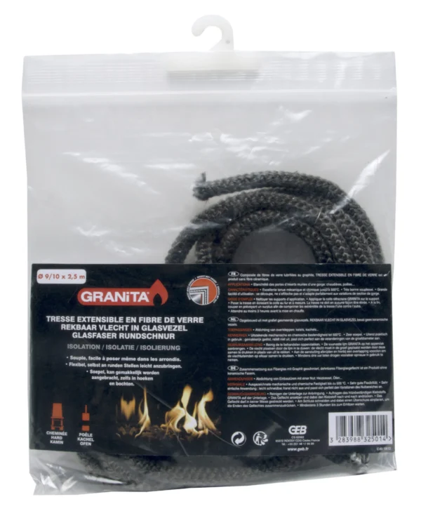 – Naturel : Gebreid omhulsel in glasvezel type E (eenheidsfilament diameter 9 μm) gevlochten met een goede flexibiliteit en goede samendrukbaarheid.