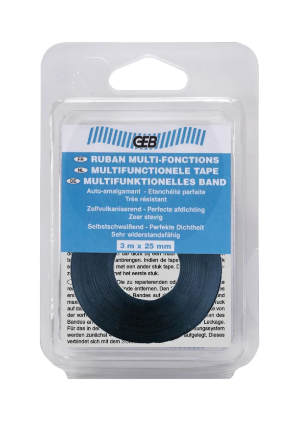 De ondergrond moet stof- en vetvrij zijn. Verwijder de witte beschermfolie. Houd het uiteinde van de band op het oppervlak en rek de band zover mogelijk uit. Breng spiraalvormig aan met een overlapping van 50% waarbij u het band blijft uitrekken. Omwikkel tenminste 2 keer (dubbeldik) en laat het band tenminste 5 cm rondom het lek uitsteken. Breng het uiteinden zorgvuldig aan en zorg dat ze zo goed mogelijk contact maken met het oppervlak (de duurzaamheid van de reparatie is hiervan afhankelijk). Scheur of snijd de band af. Als het band afscheurt tijdens het aanbrengen kunt u doorgaan met een ander stuk. Dit zal versmelten met het eerste. Het band is met een cutter te verwijderen.
