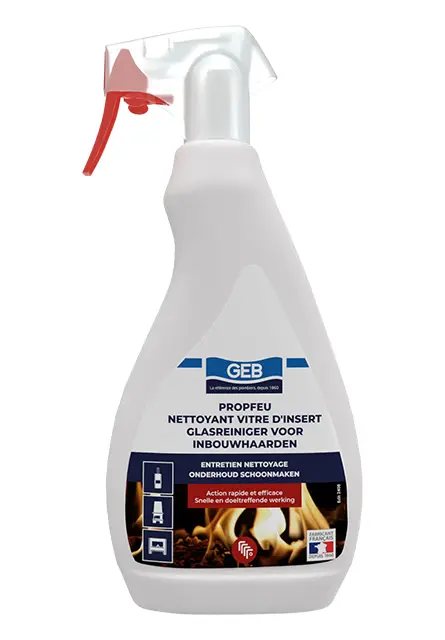Alkalische vloeistof op basis van kaliumhydroxide voor het verwijderen van roet, teer, vet- en koolresten voor ruiten van inbouwhaarden/kachels.