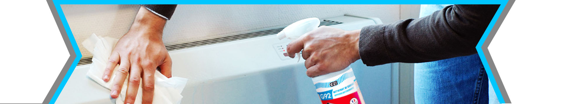 ‘- Product voor de reiniging van de zichtbare elementen van de klimaatregelingseenheden en van de mechanisch gecontroleerde ventilaties (kast, luiken, ventilatieopeningen) zowel binnen als buiten. Het werkt eveneens, meer in het algemeen, efficiënter op alle externe delen van de uitrustingen als luchtbehandelingstechniek zoals bijvoorbeeld verwarmingsketels.