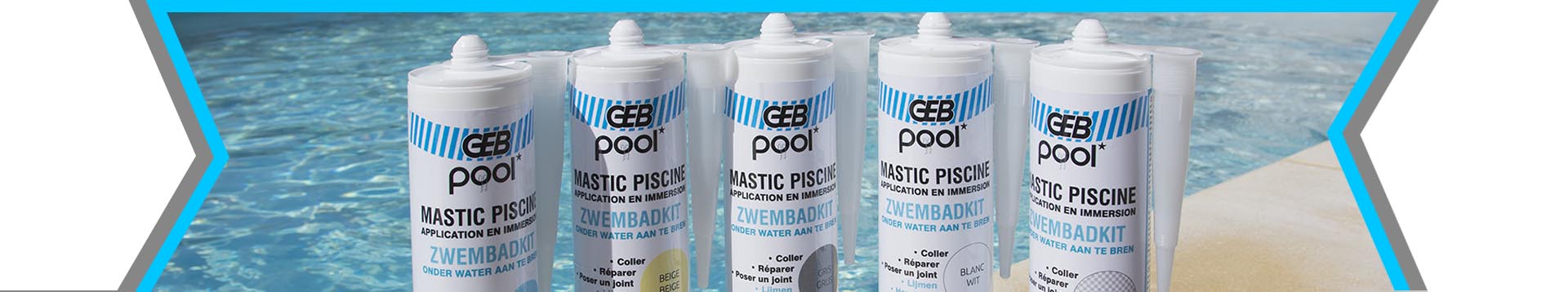 – Collage des rebords, des pièces à fixer et des éléments de piscine en polyester (marches, échelles, systèmes de filtration).