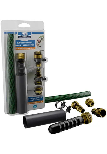 Déboucheur à eau permettant de déboucher les canalisations en intérieur ou extérieur, telles que les lavabos, douches, baignoires, éviers, machines à laver, canalisations souterraines et de piscines.