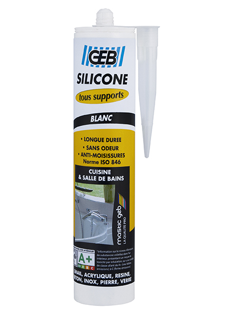 Mastic silicone neutre (alcool / alcoxy) avec effet fongistatique (protection contre les moisissures).
