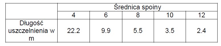 W zależności od wymiarów połączenia i zastosowania, kartusz 310 ml pozwoli na wykonanie uszczelnienia o długości (długość jest wyrażona w metrach bieżących):