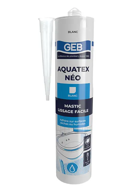 Mastic sanitaire à base aqueuse avec effet fongistatique (protection contre les moisissures).