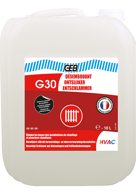 Le G30 DESEMBOUANT s’utilise pour le désembouage des installations de chauffage existantes quel que soit leur âge. Elimine les bruits de chaudière et radiateurs et augmente le rendement de l’installation. Convient pour les planchers chauffants. S’utilise aussi avant la mise en marche d’une installation neuve afin d’éliminer les résidus (copeaux métalliques, résidus de flux, filasse…).