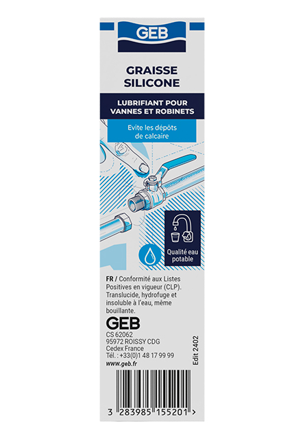 Graisse à base d’huile silicone et de charges inertes, hydrofuge, résistante à la température et à de nombreux produits chimiques :